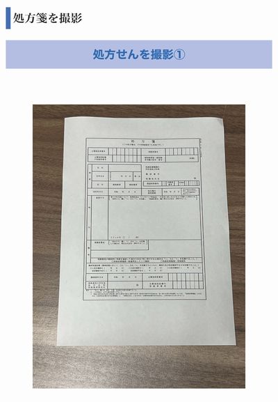 スマートフォンのカメラ機能を使って、病院・クリニックで発行された処方せんをかかりつけの薬局へ送信する事ができます。