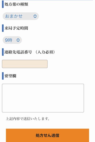 受付後、来局予定時間にあわせて調剤してお待ちしております。